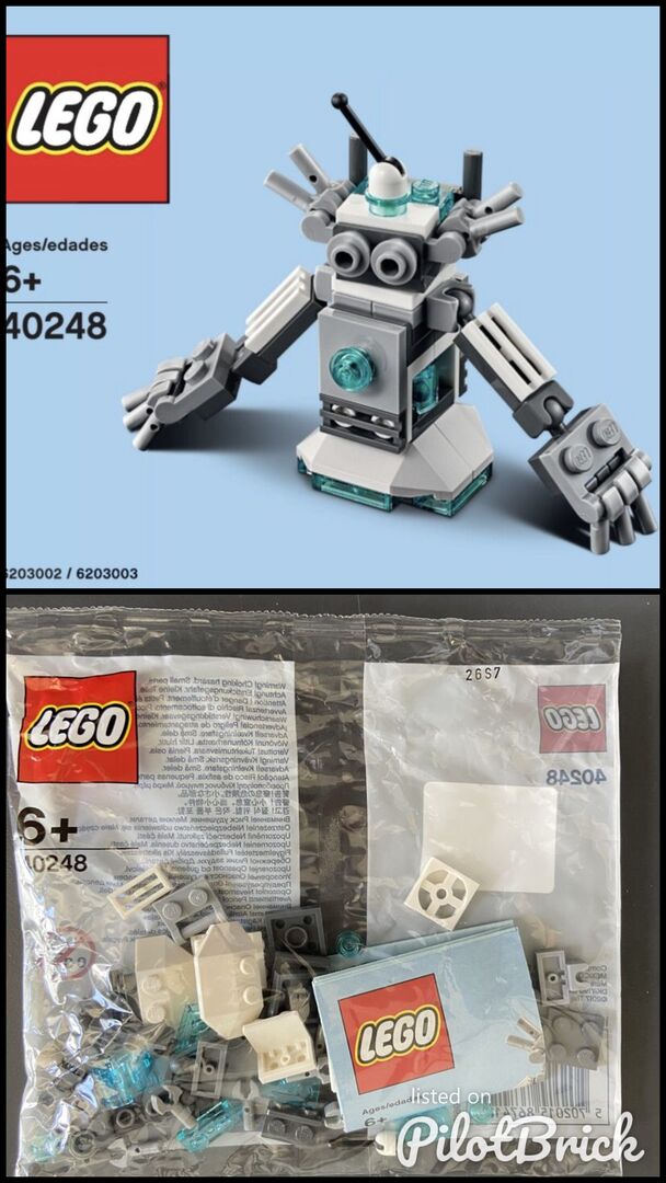 New in Sealed Poly Bag The LEGO Monthly Mini Model Build Set 40248-1 (October 2017) is a, small polybagged robot set that was released as part of a campaign. The set, known as "Robot," features a small, blue and yellow robot design and is now a retired, highly collectible item