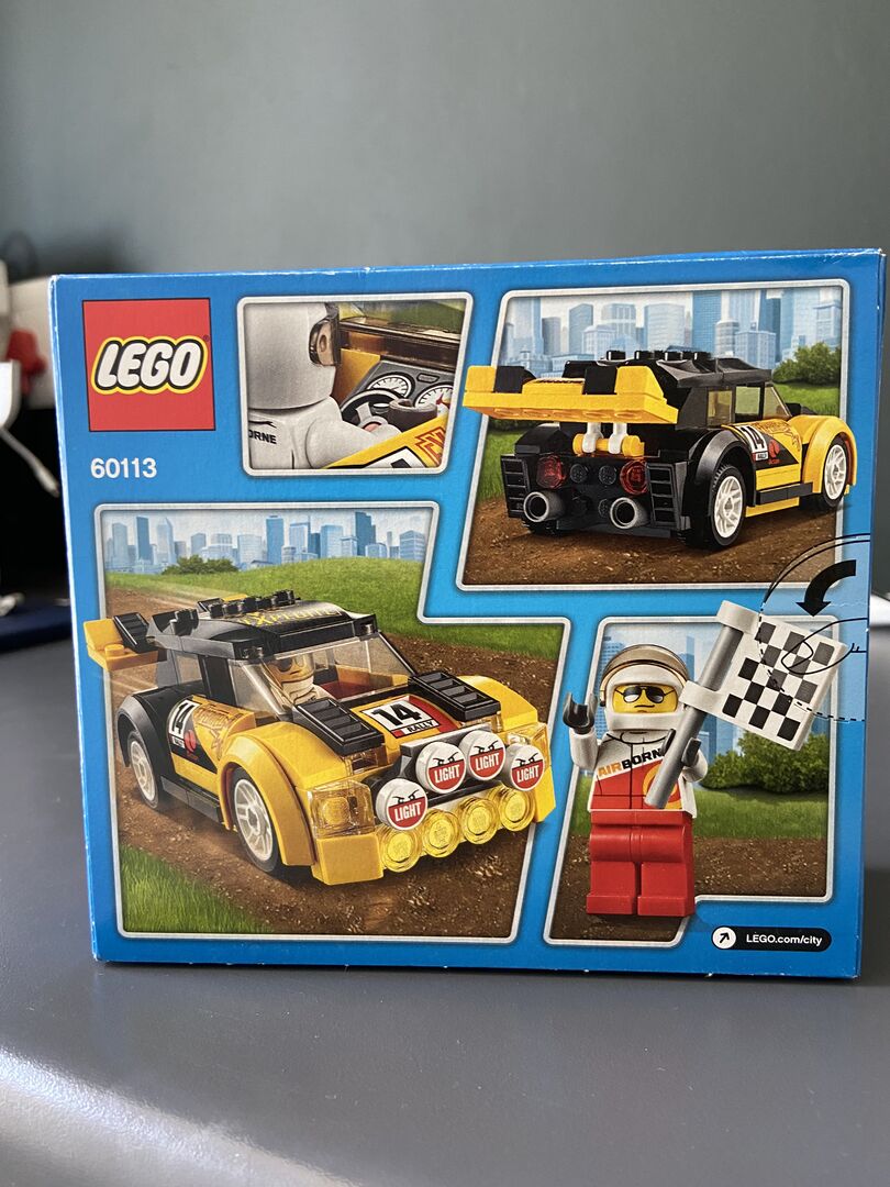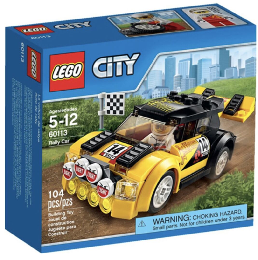 Brand New in Sealed Box! Includes a race car driver minifigure. Features a Rally car with adjustable spoiler on the rear. Includes a checkered flag element. Rally Car measures over 1” (4cm) high, 4” (12cm) long and 1” (5cm) wide.