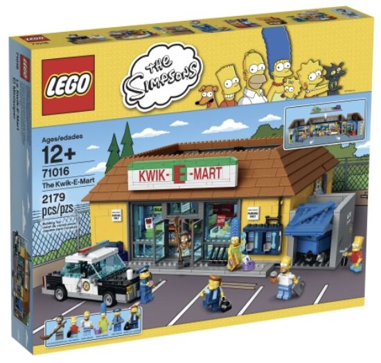 New & in Sealed Box Welcome to The Kwik-E-Mart—your one-stop shop for convenience foods at inconvenient prices! This highly detailed and iconic LEGO® version of The Simpsons™ store is packed with more rich, colorful details than a Mr. Burns birthday cake has candles! Walk under the huge Kwik-E-Mart sign and join Homer, Marge and Bart as they browse the aisles filled with beauty products, diapers, dog food, pastries, fruits, vegetables and more—including Krusty-O’s and Chef Lonelyheart’s Soup for One. Then head over to the refrigerated cases where you’ll find Buzz Cola, chocolate milk, various other drinks and snacks… and frozen Jasper! There’s also a Buzz Cola soda fountain, juice dispensers, coffee machine, arcade games, ATM and stacks of Powersauce boxes. At the counter, Apu is ready to tempt you with a variety of printed magazines, comic books, cards, tofu hot dogs, freshly expired donuts and his ever-popular hallucination-inducing Squishees. At the back, there’s a storage closet complete with rat and an exit. On the roof you’ll discover Apu’s secret vegetable garden, while outside this amazing model features bright-yellow walls, 2 phone booths, a stack of purple crates, and a dumpster area with ‘El Barto’ graffiti, opening door and an iconic blue dumpster that also opens. You can also remove the roof and open out the rear walls for easy access. This set also includes Snake (a.k.a. Jailbird), who loves nothing more than stealing cars and robbing the Kwik-E-Mart—but this time Chief Wiggum is hot on his tail in his police car. Capture this bandit and return peace to the town of Springfield and the amazing Kwik-E-Mart. This fantastic set includes 6 minifigures with assorted accessory elements: Homer Simpson, Bart Simpson, Marge Simpson, Apu Nahasapeemapetilon, Chief Wiggum and Snake (a.k.a. Jailbird). Set includes 6 minifigures with assorted accessory elements: Homer Simpson, Bart Simpson, Marge Simpson, Apu Nahasapeemapetilon, Chief Wiggum and Snake (a.k.a. Jailbird) Features opening rear walls, a removable roof with secret vegetable garden, Kwik-E-Mart signage, light-blue walls, dusty blue floors, turquoise welcome mat, shelves, refrigerated cases, counter, Buzz Cola soda fountain, juice dispensers, coffee machine, 2 arcade games, ATM, crates of Powersauce bars, surveillance cameras, rear storage closet with a rat, cheese, rat hole and an exit door. Shelves feature beauty products, diapers, dog food, pastries, fruits, vegetables and more—including Krusty-O’s and Chef Lonelyheart’s Soup for One Refrigerator cabinets feature a variety of beverages including cans of Buzz Cola... and frozen Jasper! Counter features a cash register, magazine and card display, lottery machine, hot dog oven, donut display and a Squishee dispenser with 2 Squishees Also includes Chief Wiggum’s police car featuring an opening trunk, removable roof and space for 3 minifigures Accessory elements include Bart’s spray can, Marge’s shopping basket, Apu’s broom and Chief Wiggum’s cuffs and truncheon Snake (a.k.a. Jailbird) is exclusive to this set for fall 2015 Removable roof features rare, dark-orange bricks Lift off the roof and open out the rear walls for easy access Drink a Squishee and get that sugar-high feeling! Apprehend Snake before he robs again! Stock up with overpriced convenience goods Discover frozen Jasper! Relax in Apu’s utopian vegetable garden Have a donut.... mmm, dooonuts! Kwik-E-Mart measures over 5" (14cm) high, 14" (38cm) wide and 10" (27cm) deep Police car measures over 2" (6cm) high, 2" (6cm) wide and 5&qu