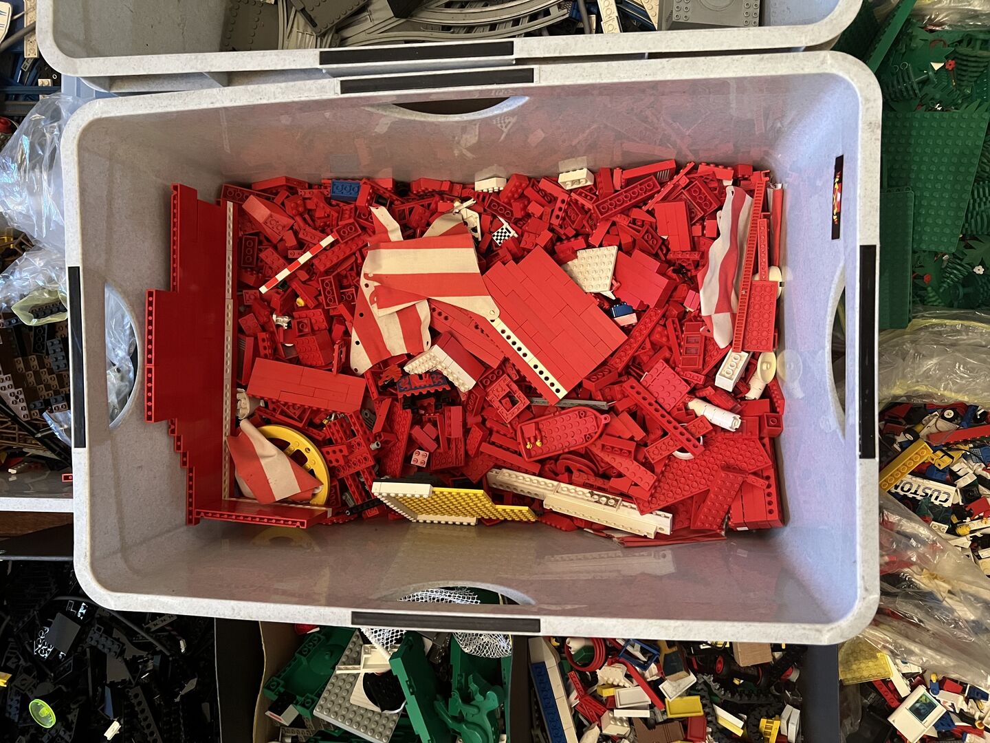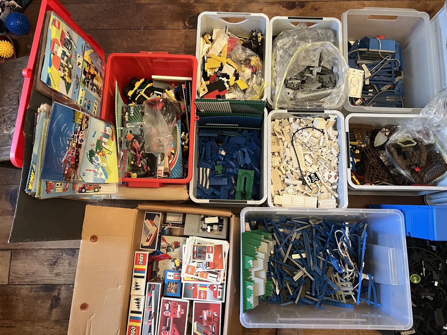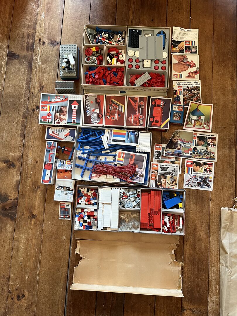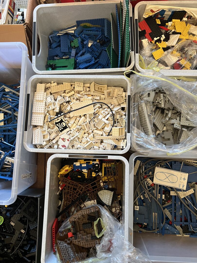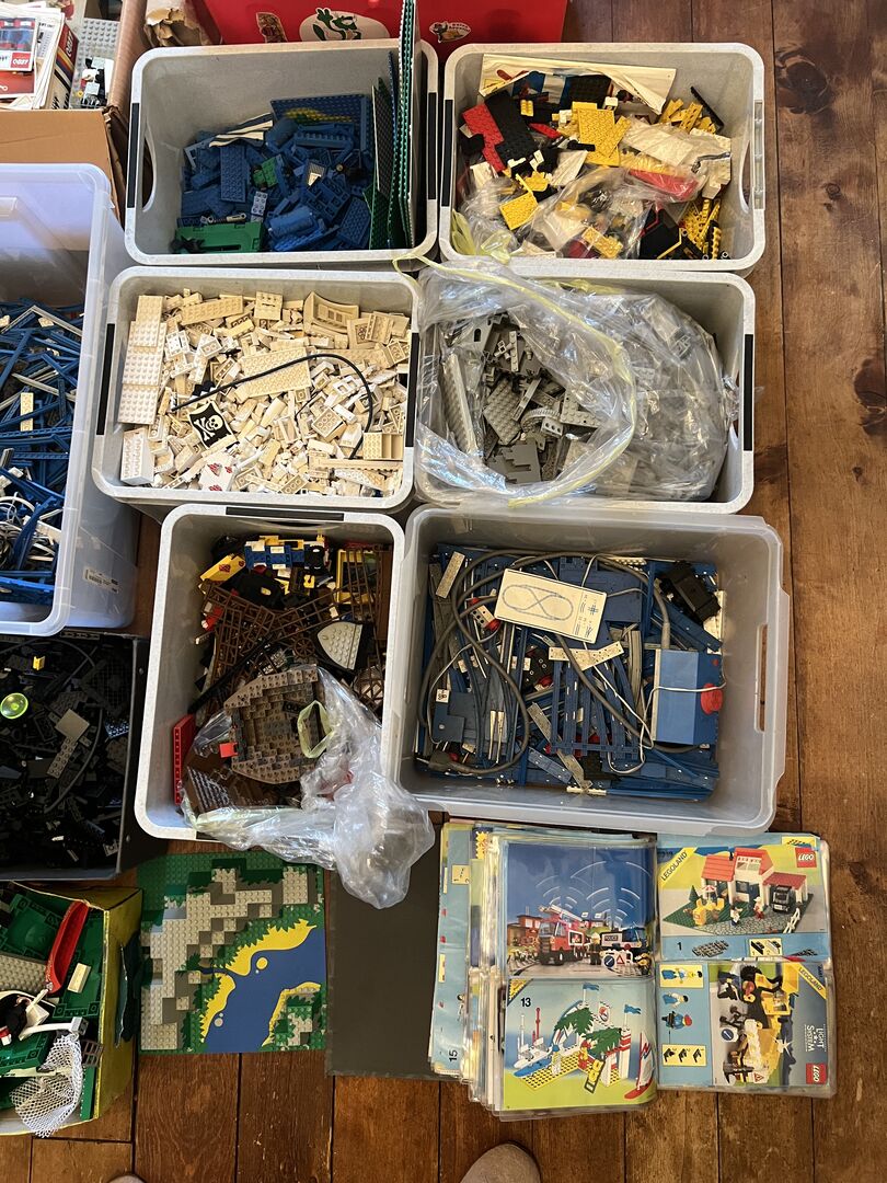large Lego collection - Large Lego collection - see flyer - approx. 100 kilos (not including containers in the weight, of course) There are also some very old sets with building instructions and original boxes. There is also a folder with plans and building instructions in transparent folders. The collection has been stored in boxes and suitcases in the attic for over 30 years. The Lego are in good, clean condition. Viewing in 3018 Bern by appointment. CHF 1'500.- en gros or price suggestion.