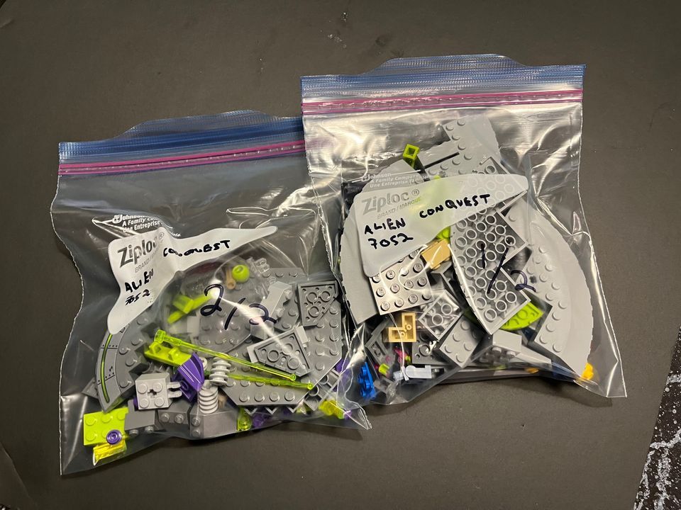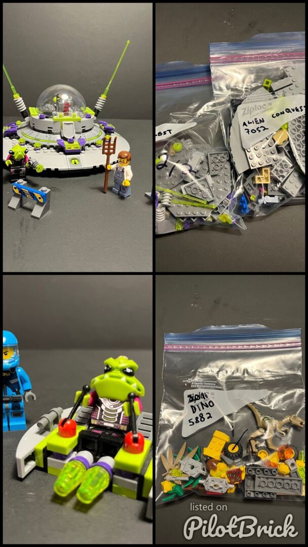 Selling two Alien Conquest and one DINO Lego set, all 100% complete: $10: Alien Conquest 7049- Alien Striker (2011) https://www.lego.com/en-us/service/buildinginstructions/7049 https://www.bricklink.com/catalogPG.asp?S=7049-1&ColorID=0 $50: Alien Conquest 7052- UFO Abduction (2011) https://www.lego.com/en-gb/service/buildinginstructions/7052 https://www.bricklink.com/catalogPG.asp?S=7052-1&ColorID=0 $15: DINO 5882- Ambush Attack (2012) https://www.lego.com/en-gb/service/buildinginstructions/5882 https://www.bricklink.com/catalogPG.asp?S=5882-1&ColorID=0 Pick up in Winnipeg or Lac du Bonnet. Will also ship anywhere in Canada at the buyers expense. Sold disassembled and bagged. Will sell as a bundle for $60.