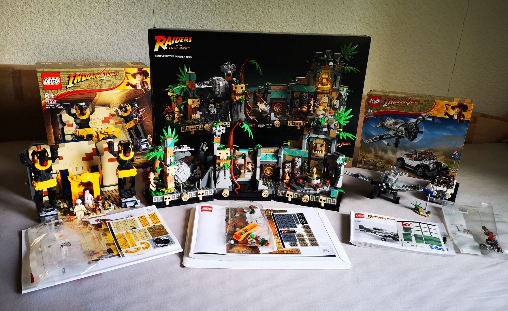Lego Indiana Jones 77012 / 77013 and 77015 *New and complete with minifigures*. - The sets are in mint condition, have been assembled 1 time and have not been played with or used. They are 100% complete. Includes boxes, instructions and all minifigures. The stickers have not been attached!